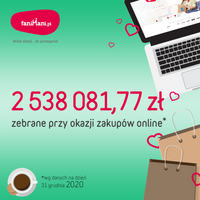 Przygotowaliśmy podsumowanie 2020 roku w serwisie FaniMani.pl, który umożliwia bezpłatne pomaganie przy okazji codziennych zakupów online. Na koniec ubiegłego roku łączna kwota zebranych w ten sposób darowizn wyniosła aż 2 538 081,77 zł.
