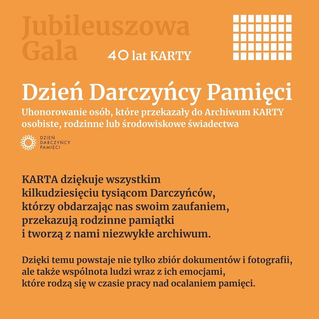 10 października 2022 w Muzeum Historii Żydów Polskich POLIN odbyła się Jubileuszowa Gala 40-lecia KARTY. Podczas wydarzenia podsumowaliśmy 40 lat działalności Fundacji Ośrodka KARTA, w ramach Dnia Darczyńcy Pamięci uhonorowaliśmy osoby, które przekazały świadectwa do naszego Archiwum, oraz wręczyliśmy III. Nagrodę KARTY im. Katarzyny i Janusza Miernickich.
