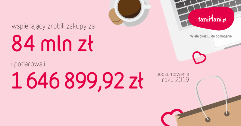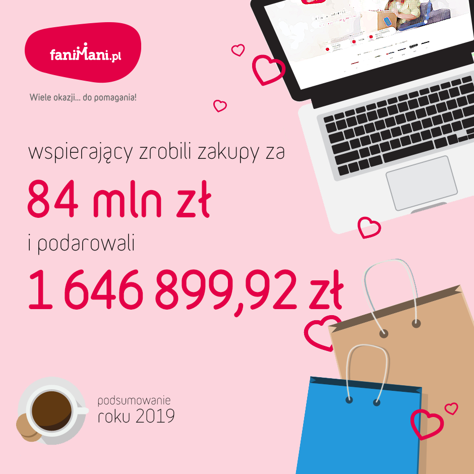 Przedstawiamy podsumowanie po 2019 roku w serwisie FaniMani.pl, który daje możliwość pomagania przy okazji codziennych zakupów online. Liczby mówią same za siebie - użytkownicy serwisu chętnie wspierają na co dzień organizacje społeczne. Na koniec 2019 wartość darowizn w serwisie FaniMani.pl wynosiła 1 646 899,92 zł. Środki te stają się wsparciem dla wielu różnych działań o charakterze społecznym i charytatywnym.