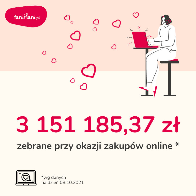 - Z FaniMani korzysta już 7268 organizacji, oraz 1088 podopiecznych. Łączna suma darowizn zebranych na koniec września 2021 roku wynosiła 3.151.185,37 zł.
