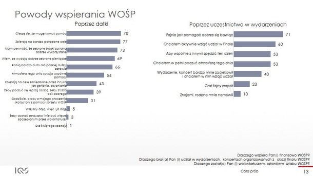 Jako najczęstsze powody wspierania WOŚP, respondenci wymienili: