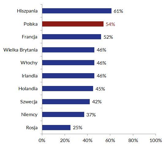 Oznacza to wzrost o 6 punktów procentowych w porównaniu do 2017 roku, co plasuje Polskę na jednym z najwyższych miejsc pod względem zaufania do NGO wśród badanych krajów europejskich (wyższy wskaźnik odnotowano tylko w Hiszpanii, gdzie organizacjom ufa 61% społeczeństwa).