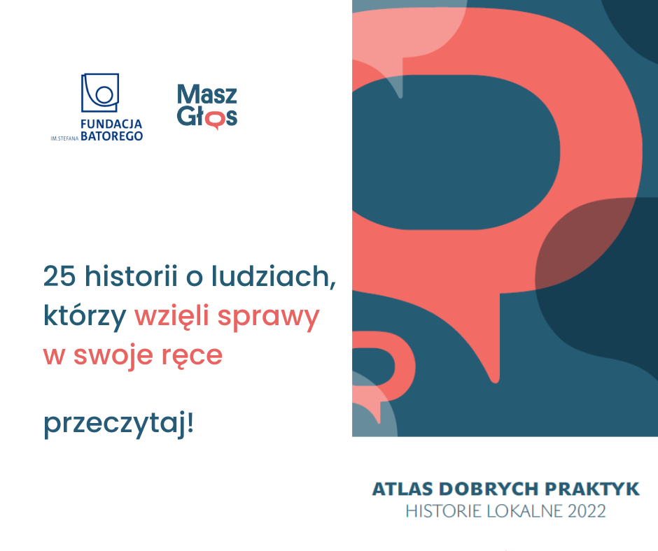 „Atlas dobrych praktyk” przedstawia 25 historii o zaangażowaniu ludzi w lokalne zmiany. Wydarzyły się one w różnych miejscach w całej Polsce, przy wsparciu akcji Masz Głos Fundacji Batorego i jej lokalnych koordynatorów. Historie dotyczą tworzenia miejsc wspólnych dla mieszkańców, dialogu w społeczności lokalnej, załatwiania potrzeb różnych grup wiekowych, ochrony środowiska i zostały zrealizowane dzięki sprawnej współpracy władz z mieszkańcami.