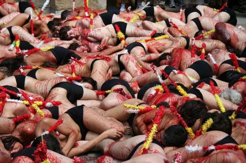 Tegoroczny protest odbył się na Plaza Consistorial. Na skwerze przed ratuszem w samej bieliźnie, z wbitymi w plecy banderillami (zakończonymi haczykowatym grotem włóczniami) i oblanych krwią położyło się ok. 100 protestujących – drugie tyle pomagało w organizacji przedsięwzięcia. W trwającej ponad godzinę demonstracji w palącym słońcu leżały osoby z całego świata, między innymi z Australii, USA, Francji, Niemiec, Włoch, Wielkiej Brytanii, Danii oraz Polski. Protest spotkał się z wielkim zainteresowaniem mediów, jak również turystów, którzy z zaciekawieniem obserwowali happening i słuchali przedstawianych przez organizatorów informacji na temat zabijaniu byków dla rozrywki.