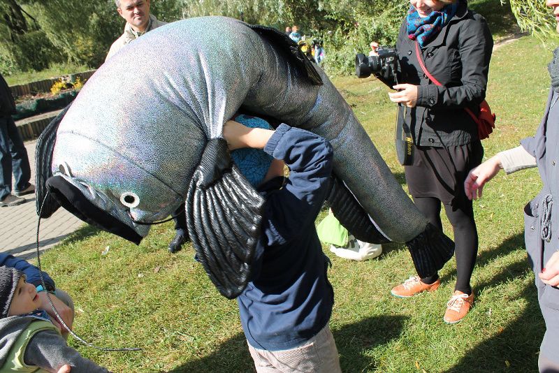 Prawdziwi wędkarze patrzyli ze zdumieniem, gdy mali i duzi warszawiacy chodzili wczoraj po Parku Moczydło z rękami pełnymi ryb. Z zazdrością rzucali też okiem a to na „Wiadro zawsze pełne ryb”, a to na wygodne „Sieciska” czy gigantyczną Ikrę.