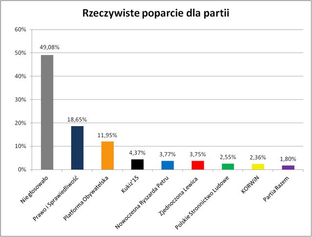 Połowa uprawnionych wciąż nie głosuje. Jakie jest rzeczywiste poparcie dla partii?