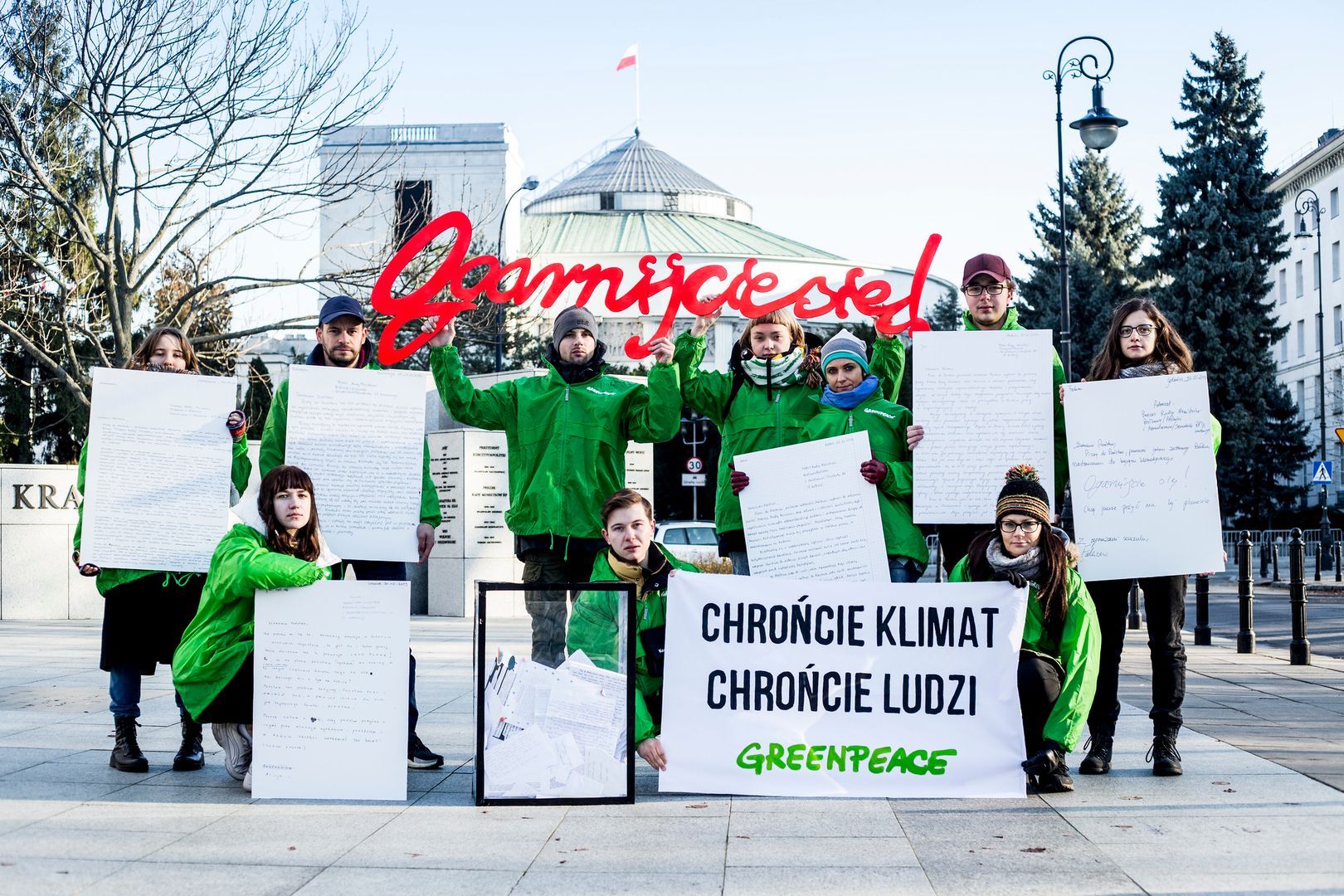 Aktywiści i aktywistki Greenpeace przekazali premierowi Mateuszowi Morawieckiemu, ministrowi klimatu Michałowi Kurtyce i szefom klubów parlamentarnych ponad 9 tysięcy listów, w których polskie dzieci i młodzież wzywają rządzących do realnych działań na rzecz ochrony klimatu. Greenpeace podkreśla, że okazja do realnych działań jest już teraz − Polska musi przestać sabotować europejską politykę klimatyczną.