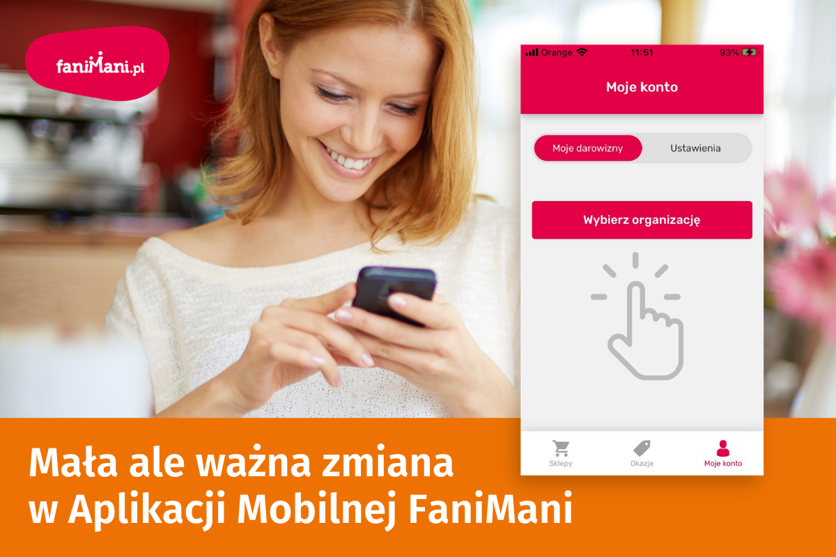 Aplikacja Mobilna FaniMani pozwala na komfortowe pomaganie z każdego miejsca, gdzie da się złapać zasięg. Do tej pory jednak wybór organizacji, której przekazywane będą darowizny podczas zakupów online, nadal możliwy był wyłącznie po zalogowaniu się do konta w wersji na komputery stacjonarne i laptopy. To już przeszłość: najnowsza aktualizacja pozwala na wybór NGO, któremu będą przekazywane darowizny, bezpośrednio w aplikacji.