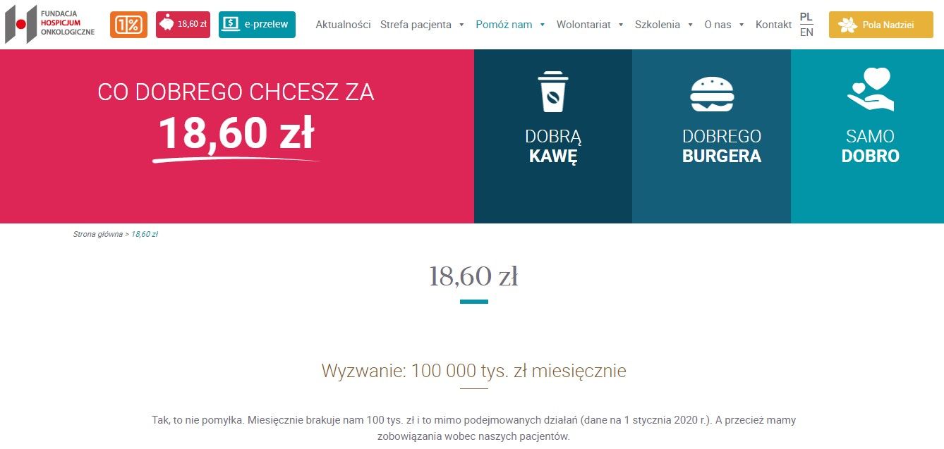 Autorzy kampanii zestawili koszty z tym, co można za daną sumę kupić. Autorką kampanii była Paulina Kasperska. Kampania powstała w 2012 r. i nadal trwa, taki był zamysł, aby zbierać finanse na bieżącą działalność FHO. Zachęcam do posłuchania wypowiedzi Pauliny Kasperskiej, obecnie fundraiserki Fundacji DKMS, nt. konstruowania apeli fundraisingowych: Jak konstruować apele fundraisingowe? Materiały po webinarium ngo.pl [film]