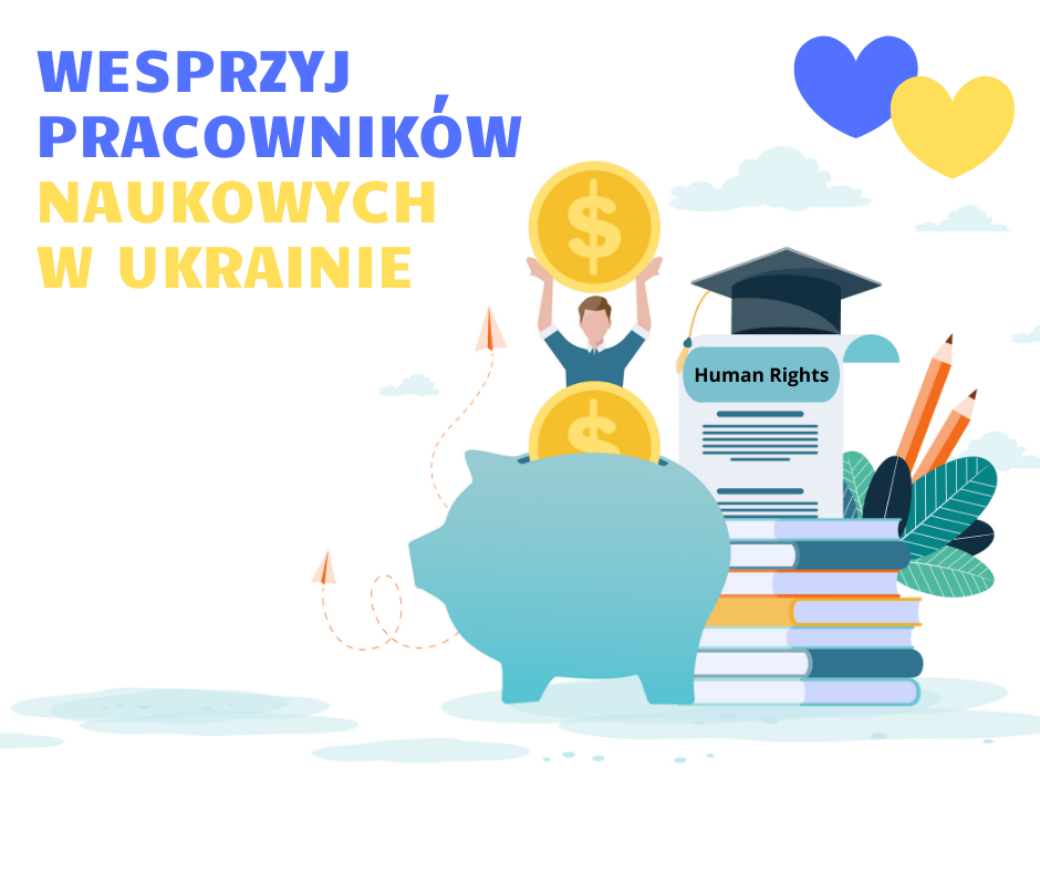 Ci, którzy walczą, potrzebują broni, ci którzy się schronili przed wojną, potrzebują opieki. Z myślą o naszych koleżankach i kolegach, naukowczyniach i naukowcach zajmujących się prawami człowieka w Ukrainie, powstała - z inicjatywy Profesor Suryi Deva, Macquarie University, Sydney, Australia, członkini Grupy Roboczej ONZ ds. biznesu i praw człowieka oraz Profesora Markusa Krajewskiego, University of Erlangen-Nuremberg, Germany - zbiórka na przyjacielski fundusz, by pomóc im przetrwać w tej trudnej dla nich sytuacji. Żeby ta inicjatywa się udała, potrzebujemy także Państwa pomocy. Uprzejmie prosimy o wsparcie finansowe dla tych, którzy na co dzień o prawach człowieka edukują, a których prawa są w tej chwili łamane.
