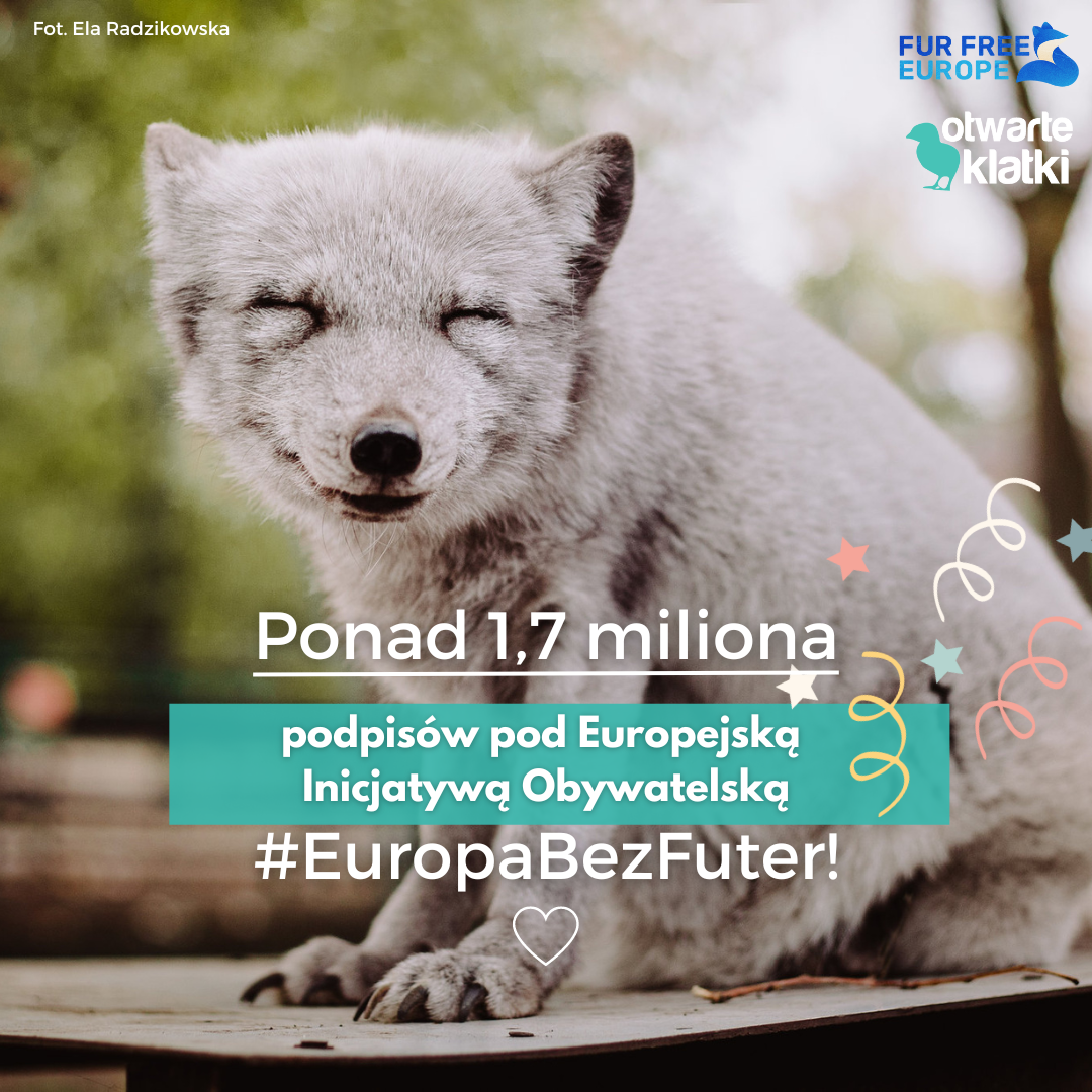 1 marca zakończyła się zbiórka podpisów pod Europejską Inicjatywą Obywatelską #FurFreeEurope, której celem jest wprowadzenie zakazu hodowli zwierząt na futro w Unii Europejskiej oraz zakazu importu futer do UE. Inicjatywa zakończyła się niemal 3 miesiące wcześniej ze względu na ogromne poparcie Europejczyków – podpisało ją ponad 1,7 miliona osób, w tym ok. 108 tys. Polek i Polaków.