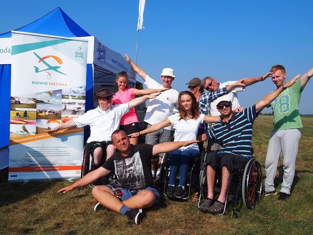 Podstawowy kurs szybowcowy na lotnisku w Turbii niedaleko Stalowej Woli zaliczyło w dniach od 25 sierpnia do 14 br. września sześć osób. Oprócz Grzegorza, także Beata, Liliana, Sławomir, Jarosław i Bartosz. Troje z nich to „wózkersi” (osoby poruszające się na wózkach), a troje to „chodziaki” (osoby niepełnosprawne ruchowo poruszające się o własnych siłach). W codziennych zajęciach towarzyszyło im sześciu wolontariuszy Fundacji PODAJ DALEJ. Bo przyznajmy szczerze - lądowanie w polu lotniska nie zawsze się udaje. Zdarza się, że szybowiec, który zboczył z kursu trzeba ciągnąć kilkaset metrów z powrotem na start. Siła i zręczność sześciu są wtedy przydatne najbardziej.