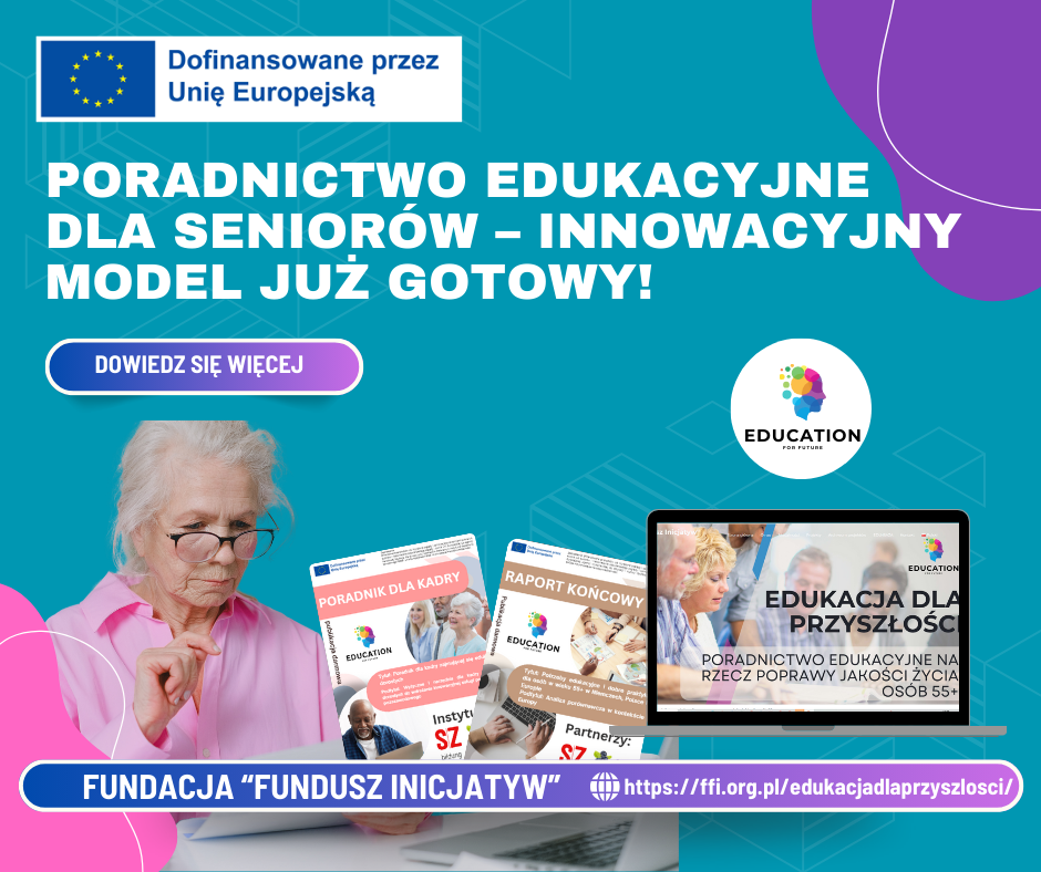 Fundacja „Fundusz Inicjatyw”, w partnerstwie z niemiecką organizacją Schwerpunkt Zentrum, kończy realizację międzynarodowego projektu „Poradnictwo edukacyjne na rzecz poprawy jakości życia osób 55+”, współfinansowanego w ramach programu Erasmus+ (KA210-ADU).