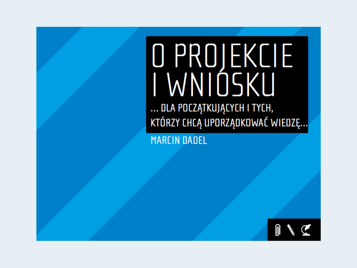 Kliknij tutaj, aby zobaczyć spis treści i wybrane fragmenty poradnika „O projekcie i wniosku… dla początkujących i tych, którzy chcą uporządkować wiedzę".