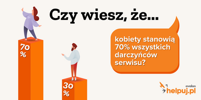 Portal Helpuj.pl notuje ponad 2 miliony złotych wpłat od darczyńców, którymi głównie są kobiety!