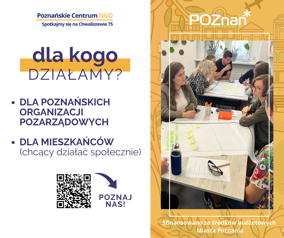 Wiesz, że w Poznaniu działa miejsce bezpłatnie wspierające społeczników i ich działania? To Poznańskie Centrum NGO, zlokalizowane przy ul. Chwaliszewo 75. Wakacje to dobry czas, aby przypomnieć naszą ofertę.