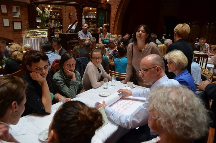 Popołudniowym spotkaniem, 30 lipca br. rozpoczął się proces konsultacji Programu współpracy miasta Torunia z organizacjami pozarządowymi na 2016 rok. Formuła spotkania została zaplanowana w konwencji World Cafe polegającej na dyskusji przy kawiarnianych stolikach w grupach tematycznych na określony temat w ściśle wyznaczonym czasie. Po upłynięciu czasu uczestnicy przechodzą do kolejnego stolika, gdzie omawiane jest kolejne zagadnienie. Dlaczego zdecydowano się na taką formę? Ponieważ pierwsze spotkanie poświęcone przyszłorocznemu programowi współpracy miało pozwolić zebrać pomysły i oczekiwania.