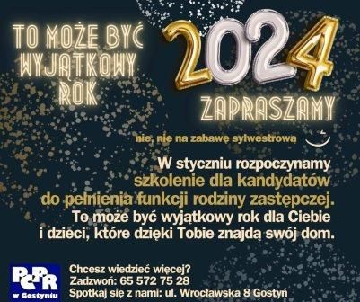 Powiatowe Centrum Pomocy Rodzinie w Gostyniu - Organizator Rodzinnej Pieczy Zastępczej, wspierane przez Stowarzyszenie „DZIECKO”, prowadzi nabór kandydatów na rodziców zastępczych, którzy gotowi są podjąć opiekę nad pokrzywdzonymi przez los dziećmi. Osoby, które wyrażą chęć pomocy dzieciom, wezmą udział w profesjonalnym szkoleniu prowadzonym przez trenerów rodzin zastępczych, podczas którego zdobędą wiedzę i umiejętności do pracy z dziećmi, uzyskają informacje o prawnych regulacjach dotyczących pieczy zastępczej, pogłębią wiedzę z zakresu pedagogiki i psychologii dziecka, zwiększą umiejętności opiekuńcze i wychowawcze oraz umiejętności rozwiązywania trudnych i konfliktowych sytuacji. Odbędą też praktyki w rodzinie zastępczej lub w domu dziecka oraz poznają inne rodziny zastępcze.