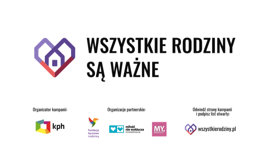 Dlatego w kampanii społecznej „Wszystkie rodziny są ważne”, którą KPH organizuje wspólnie z Fundacją Tęczowe Rodziny, stowarzyszeniem Miłość Nie Wyklucza oraz stowarzyszeniem My, Rodzice, oddajemy im głos!