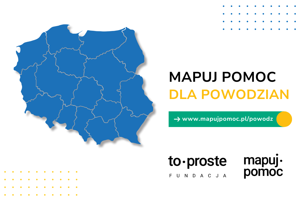 Fundacja To Proste, która stworzyła i prowadzi serwis Mapuj Pomoc – polsko-ukraińską bazę wsparcia oraz portal informacyjny dla uchodźców – przygotowuje obecnie Mapę Pomocy dla Powodzian. Inicjatywa ma na celu zebranie sprawdzonych i aktualnych informacji o ogłoszeniach pomocy oraz poszukiwaniu wsparcia dla osób dotkniętych powodzią.