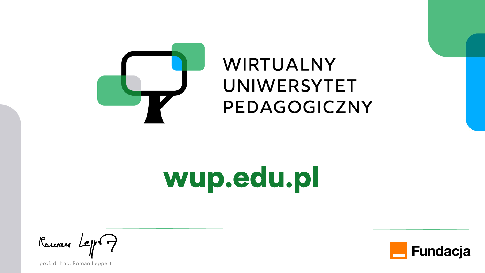 „Mocno wierzę, że celem edukacji jest kształtowanie życzliwej postawy wobec ludzi i świata. Świata, w którym uczymy się wspólnie oraz wzajemnie od siebie. Wirtualny Uniwersytet Pedagogiczny, to kwintesencja takiego sposobu działania. Powstaje z myślą o przyszłości pedagogiki i edukacji, jedocześnie sięgając do ich ważnych korzeni. Serdecznie zapraszam do udziału w tej inicjatywie” – mówi Konrad Ciesiołkiewicz, prezes Fundacji Orange.