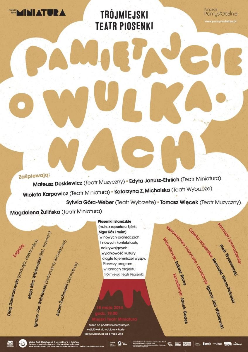 „Pamiętajcie o wulkanach” jest pierwszym programem realizowanym w ramach Trójmiejskiego Teatru Piosenki powstałego z inicjatywy Teatru Miniatura i Fundacji Pomysłodalnia.