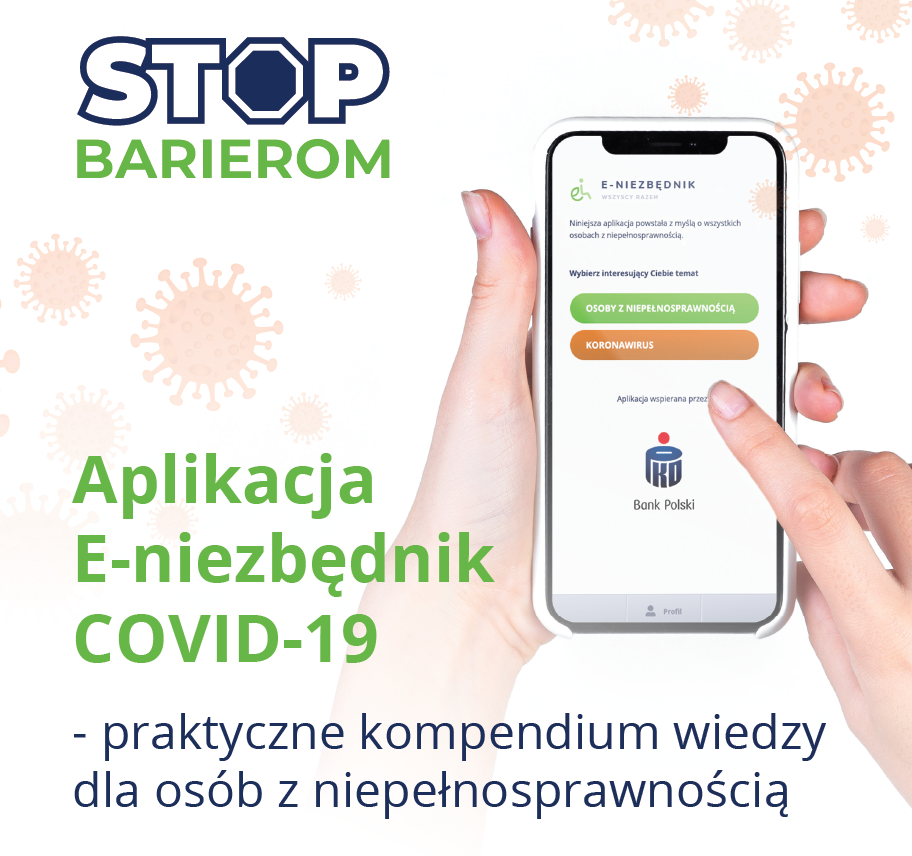 W ramach II edycji ogólnopolskiej kampanii STOP Barierom, na rzecz aktywizacji zawodowej osób z niepełnosprawnością, powstała praktyczna aplikacja ,,E-niezbędnik COVID-19’’. Partnerem Strategicznym projektu jest PKO Bank Polski.