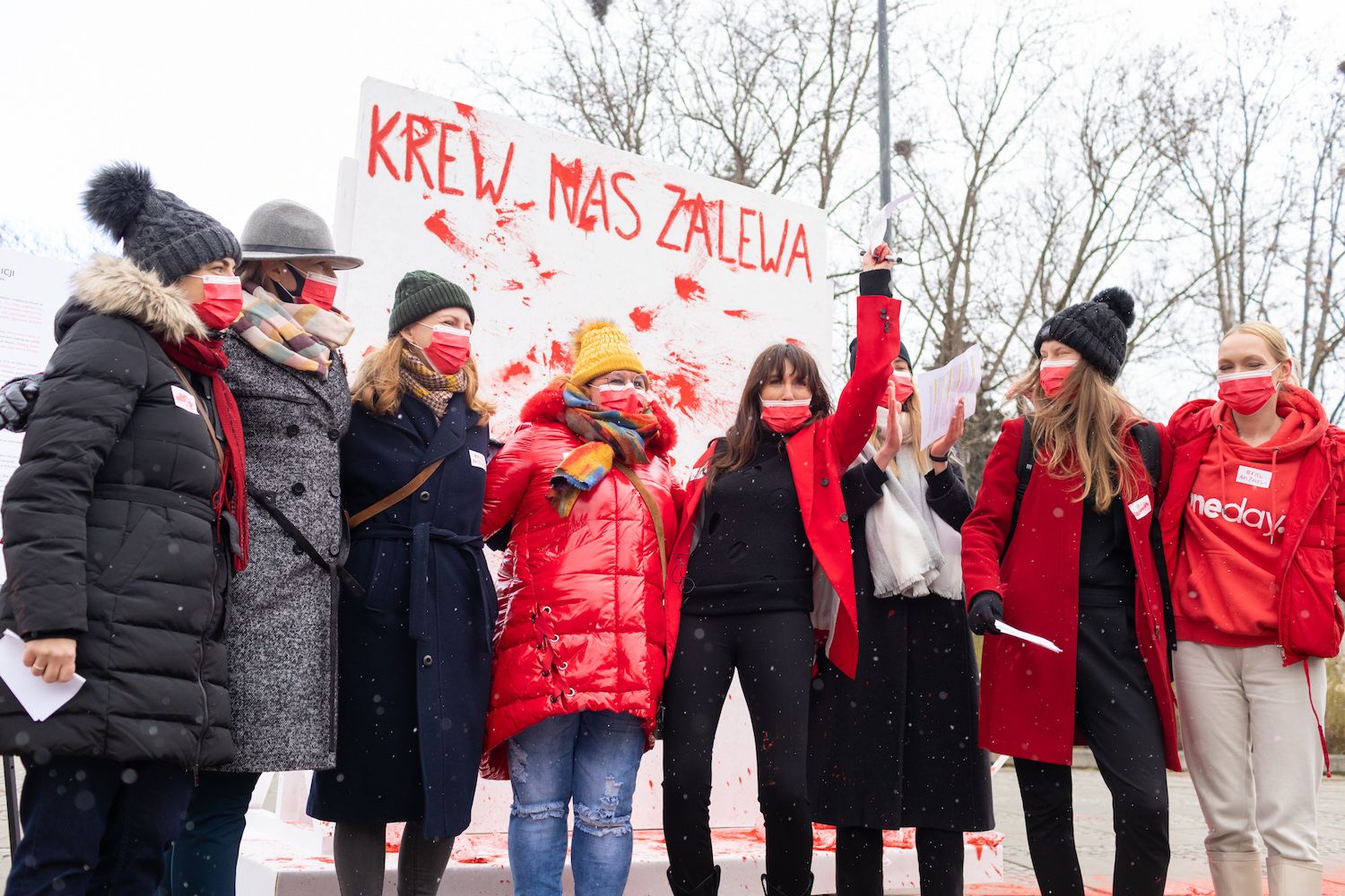 Oprócz Magdaleny Demczak z Akcji Menstruacja i Dominiki Kulczyk z Kulczyk Foundation w inauguracji Okresowej Koalicji wzięły też udział inne aktywistki i ekspertki z organizacji zajmujących się problemem wykluczenia menstruacyjnego, między innymi Ewa Szymera (Różowa Skrzyneczka), Basia Pietruszczak (Pani Miesiączka/moonka) i Ula Okoń (Polski Czerwony Krzyż). W ramach happeningu namawiały przechodniów do rzucania balonikami z czerwoną farbą w ścianę z napisem „Krew nas zalewa”, jako wyraz niezgody na dalsze ignorowanie tematu miesiączki i solidarności z treścią manifestu i ideą akcji.