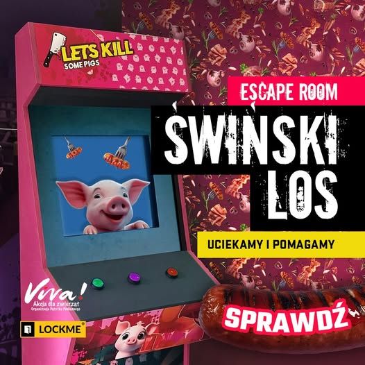 – Zapraszamy zarówno wegan, wegetarian, jak i osoby, które dopiero zaczynają zadawać pytania. Świnie to niezwykle inteligentne i wrażliwe zwierzęta, a jednak w hodowli przemysłowej są traktowane jak maszyny. Escape room „Świński Los” stworzyliśmy, by w poruszający sposób pokazać ich rzeczywistość – budować świadomość, skłaniać do ograniczania mięsa, ale też walczyć o realne zmiany w przepisach, jak zakaz okrutnych praktyk, np. kastracji prosiąt bez znieczulenia. To doświadczenie ma otwierać oczy i zachęcać do działania. Część dochodu z biletów zostanie też przeznaczona na działania naszego Schroniska w Korabiewicach, które wspiera bezdomne, chore i potrzebujące zwierzęta – dodaje Anna Zielińska.