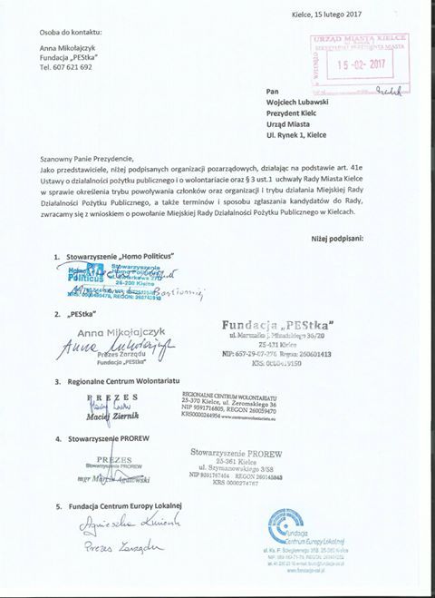 Organizacje pozarządowe z Kielc złożyły wniosek o powołanie Miejskiej Rady Działalności Pożytku Publicznego. Musi ona zostać utworzona w przeciągu 2 miesięcy.
