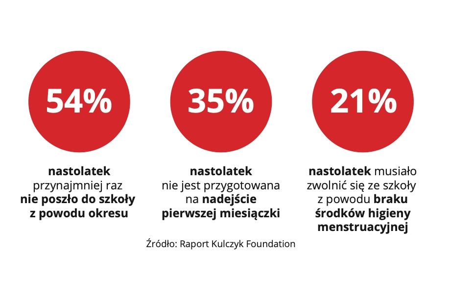 Wbrew powszechnym stereotypom, ubóstwo i wykluczenie menstruacyjne występują także w Polsce i w dużym stopniu dotyczą dziewczynek. Potwierdzają to badania Kulczyk Foundation z 2020 roku. Wynika z nich, że ponad połowa polskich nastolatek przynajmniej raz nie poszła do szkoły z powodu okresu.Jedna trzecia z nich nie jest przygotowana na nadejście pierwszej miesiączki. Co piąta młoda dziewczyna w Polsce musiała zwolnić się z lekcji z powodu braku środków higieny menstruacyjnej.
