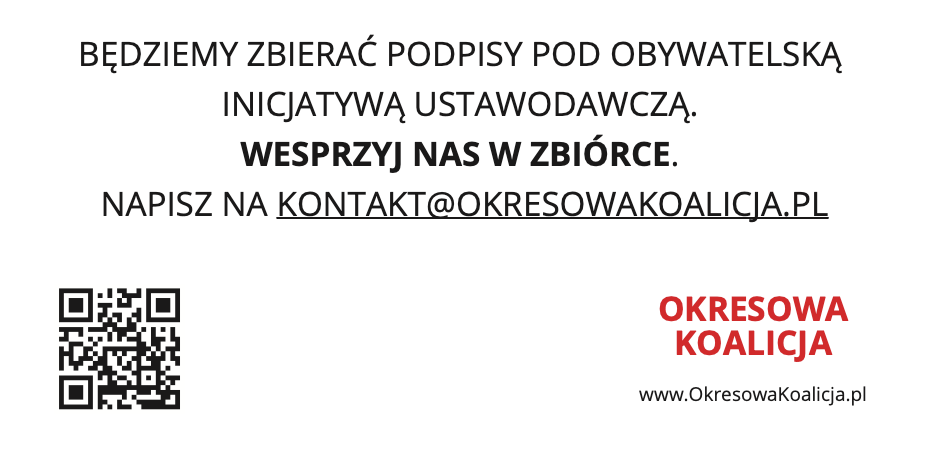 Ogłoszenie inicjatywy zbiórki 100 000 podpisów, w imieniu Okresowej Koalicji, zapowiedziała podczas Kongresu Kobiet Dominika Kulczyk. Pierwszy polski projekt ustawy dotyczący menstruacji ma zostać złożony w polskim parlamencie w formie obywatelskiej inicjatywy ustawodawczej. Okresowa Koalicja zaapelowała też do środowisk kobiecych o wsparcie. Ustawa ma wprowadzić bezpłatny dostęp do środków menstruacyjnych oraz edukacji na temat zdrowia menstruacyjnego we wszystkich polskich szkołach.
