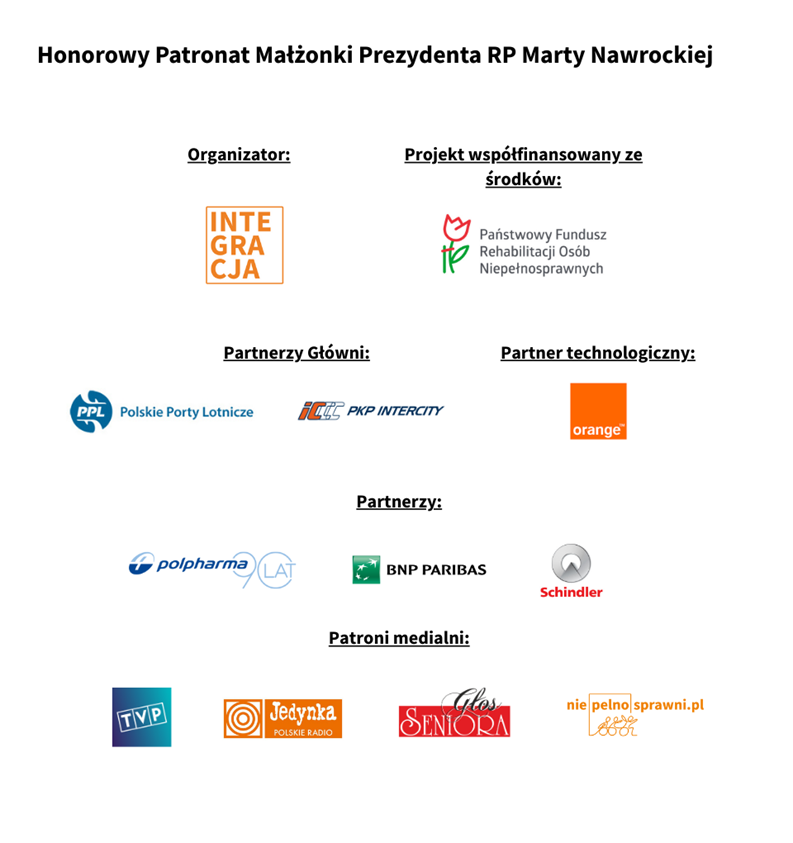 Patronat medialny: TVP, Program 1 Polskiego Radia, Głos Seniora, portal Niepelnosprawni.pl