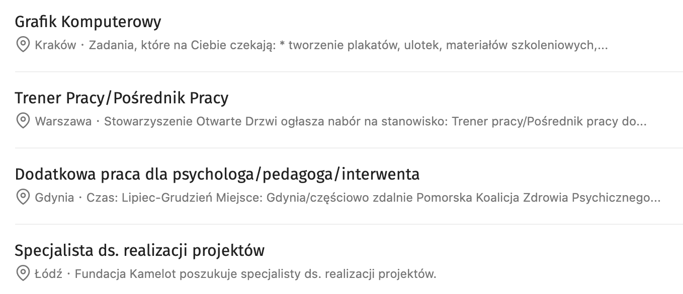 Poniżej znajdziesz przykładowe ogłoszenia o pracę, dodane do serwisu ogloszenia.ngo.pl w dniu 9 lipca 2020:
