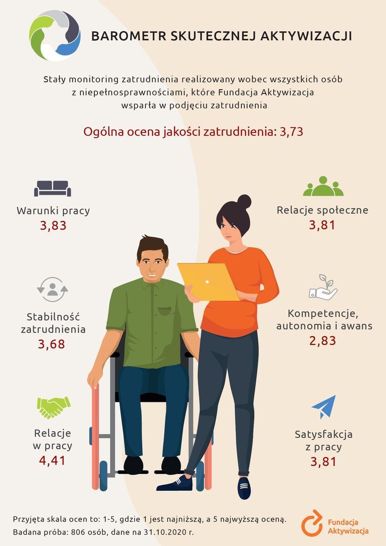 Barometr skutecznej aktywizacji jest badaniem, w którym poza obiektywnymi parametrami zatrudnienia monitorowanym dotychczas przez Fundację Aktywizacja (wysokość wynagrodzenia, stabilność zatrudnienia, rodzaj umowy itp.) osoby z niepełnosprawnościami pytane są o ocenę poszczególnych obszarów zatrudnienia. Ankietowani oceniają takie obszary, jak wynagrodzenie, dostęp do urlopu, BHP, potencjalne ryzyka dla zdrowia, satysfakcję z zatrudnienia, relacje w pracy oraz wpływ pracę na ich życie i aktywność społeczną. Jest to pierwsze takie badanie w Polsce – nikt do tej pory nie pochylił się nad tematem oceny pracy przez samych pracowników z niepełnosprawnościami. Dzięki wynikom tego badania będzie możliwe lepsze zrozumienie i poznanie perspektywy tej grupy osób oraz oceny swojej sytuacji zawodowej.