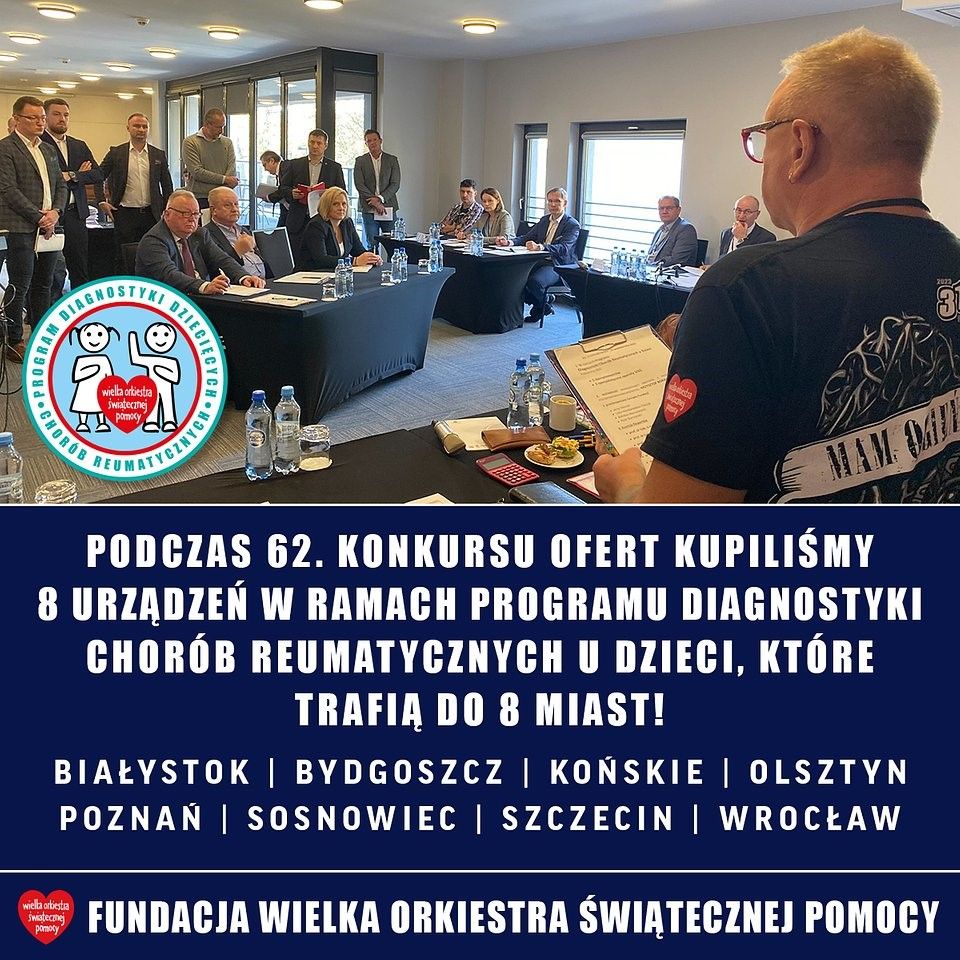 25 października Fundacja WOŚP zrealizowała 62. Konkurs Ofert. Tym razem zakupy sprzętu medycznego dedykowane były wsparciu prowadzonego od 2019 roku Programu Diagnostyki Chorób Reumatycznych u Dzieci. Sprzęt zakupiony za blisko 3 miliony złotych już w ciągu 4 miesięcy trafi do 8 wytypowanych placówek.