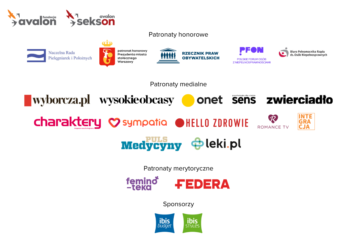 Konferencja odbędzie się po patronatem/matronatem takich mediów jak: Onet, Wyborcza.pl, Wysokie Obcasy, Charaktery, Puls Medycyny, Zwierciadło, Sens Sympatia, Hello Zdrowie, Romance TV, Integracja, Leki.pl.