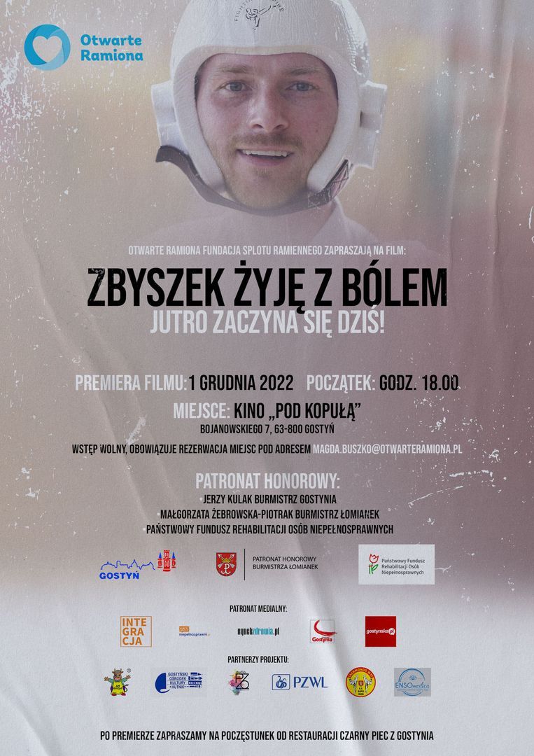 1 grudnia 2022 r., w historycznym Kinie „Pod Kopułą” w Gostyniu odbędzie się premiera drugiego filmu z serii „Żyję z bólem” pt. ZBYSZEK. Filmy w reżyserii Marcina Samborskiego, realizowane są przez Otwarte Ramiona Fundację Splotu Ramiennego. Ich celem jest przybliżenie widzom życia osób, które na skutek poważnego wypadku muszą mierzyć się z bólem neuropatycznym.