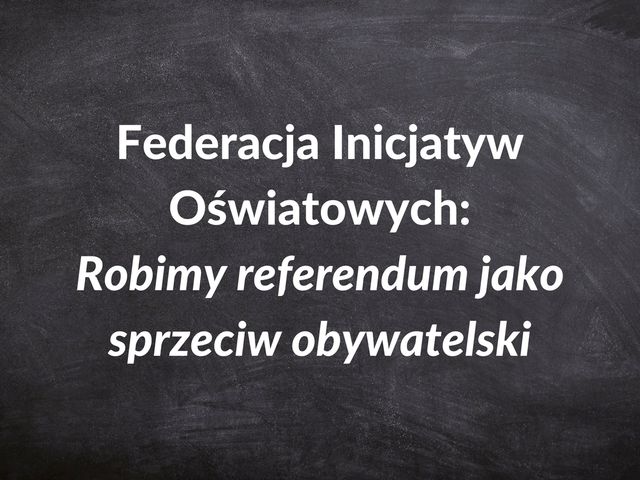 W odpowiedzi na podpis Prezydenta pod ustawami oświatowymi Federacja Inicjatyw Oświatowych postanowiła włączyć się w organizację Referendum obywatelskiego w sprawie oświaty, którego przeprowadzenie zaproponowało ZNP. Uważamy, iż Referendum powinno być głosem sprzeciwu wobec zawłaszczania polityki edukacyjnej przez jakąkolwiek partię polityczną i jednocześnie początkiem budowania porozumienia dla edukacji ponad podziałami partyjnymi.