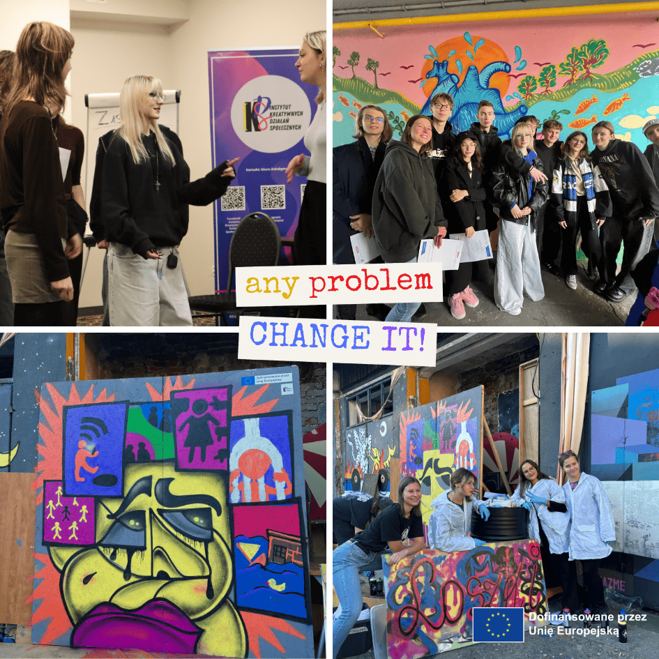 Instytut Kreatywnych Działań Społecznych zainicjował projekt „Any Problem, Change It”, który łączy młodzież, ekspertów i decydentów w celu wspólnego rozwiązywania współczesnych problemów społecznych. Pierwszy zjazd (4–6 października 2024 r.) odbył się w Warszawie i skupiał się na identyfikacji kluczowych wyzwań, takich jak wykluczenie społeczne czy zmiany klimatyczne. Podczas drugiego zjazdu (18–21 października 2024 r.) uczestnicy współtworzyli rekomendacje oraz wizualizowali wyniki w formie murali.