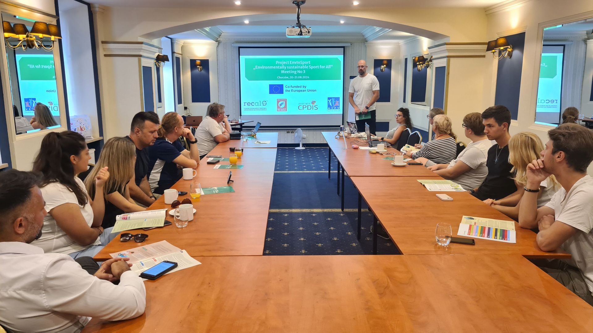 Najważniejszym elementem spotkania były warsztaty prowadzone przez Łukasza Kalicińskiego - doświadczonego eksperta działającego w obszarze promocji sportu. Projekt EnvInSport to okazja do wymiany doświadczeń i rozwoju praktycznych działań na rzecz zrównoważonych ekologicznie imprez i aktywności sportowych. Każda organizacja partnerska Projektu była reprezentowana przez jej pracowników oraz wolontariuszy. Praca tak dużej grupy pozwoliła na różnorodne spojrzenie i podejście do omawianego tematu.
