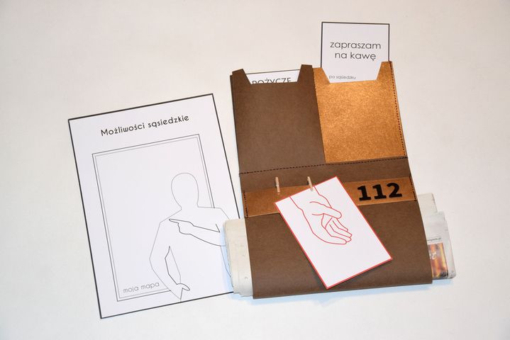 “Sąsiedzka Kieszeń Wsparcia” to kolejny przykład rozwiązania wypracowanego przez Towarzystwo Inicjatyw Twórczych “ę”, Natalię Gołubowską oraz Annę Stelmarczyk-Matraj z Wołowa. Polega ono na opracowaniu systemu komunikacji graficznej (kieszeni wsparcia) do samodzielnego użycia umożliwiającego komunikację oraz wymianę wzajemnych usług pomiędzy osobą starszą zależną, jej najbliższymi sąsiadami z klatki schodowej oraz lokalnymi instytucjami kultury.