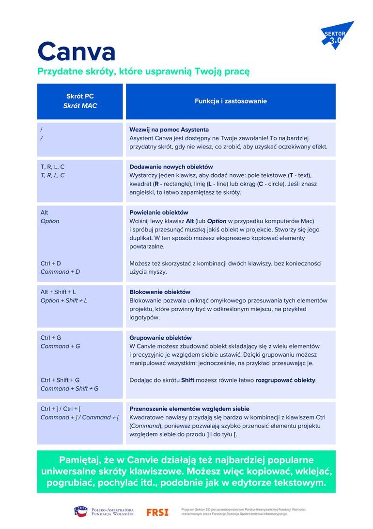 Prowadnice, linijki, filtry, style, praca na warstwach… To funkcje, które kojarzą się z profesjonalnymi programami do obróbki zdjęć i tworzenia grafik na komputerze. Warto pamiętać, że są dostępne również w Canvie i pozwalają na precyzyjne przygotowanie materiałów. Trzeba tylko wiedzieć, gdzie i jak je ustawić. Na efektywność wpływa również duża ilość skrótów klawiaturowych, które pozwalają pracować szybko i płynnie. To właśnie usługi Canva, które są dostępne dla organizacji pozarządowych za darmo.