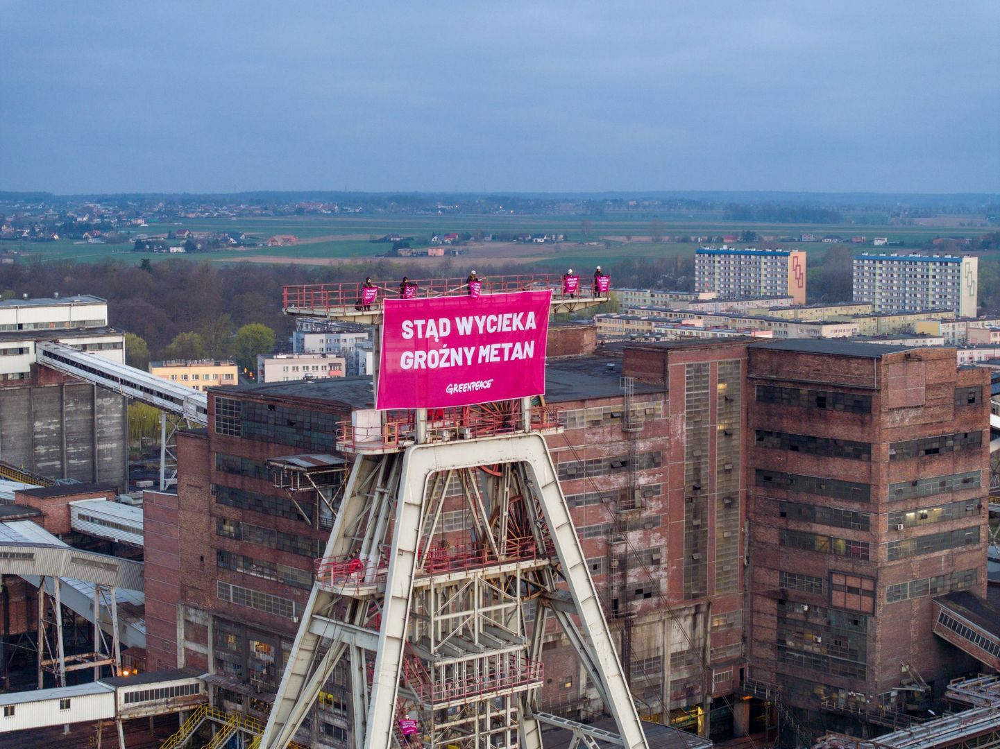 W czwartek, 9 kwietnia, grupa aktywistów i aktywistek Greenpeace wspięła się na szyb kopalni Szczygłowice w Knurowie i zawiesiła na wysokości ponad 50 metrów olbrzymi transparent z napisem „Stąd wycieka groźny metan”. Kopalnia należąca do państwowej spółki JSW jest niechlubnym liderem przemysłowych emisji metanu w Unii Europejskiej. Łącznie polskie kopalnie węgla wyemitowały w 2024 roku aż 360 tysięcy ton metanu, co w przeliczeniu na ekwiwalent CO2 daje blisko 30 milionów ton dwutlenku węgla — to więcej niż emisje elektrowni Bełchatów. Dzieje się tak mimo że kopalnie te mają instalacje odmetanowania, które powinny — w teorii — temu problemowi zaradzić. Tymczasem, jak wskazuje Międzynarodowa Agencja Energetyczna, blisko 60% metanu z polskich kopalń można tanio wychwycić i wykorzystać, np. do ogrzewania domów lub w przemyśle.