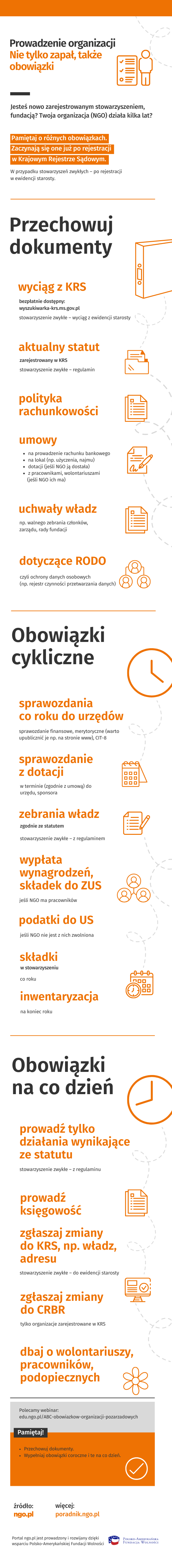 Infografika: Prowadzenie organizacji. Nie tylko zapał, także obowiązki