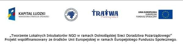 Lokalne Inkubatory NGO powstały w ramach projektu"Tworzenie Lokalnych Inkubatorów NGO w ramach Dolnośląskiej Sieci Doradztwa Pozarządowego" współfinansowanego ze środków Unii Europejskiej w ramach EFS.