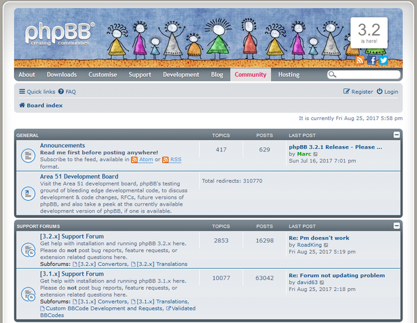 Jedno z najprostszych i jednocześnie najbardziej efektywnych rozwiązań na rynku. Pierwsza generacja systemu PHP BB powstała w 2000 roku jako projekt typu open-source. Prawdziwie przełomowa dla popularności okazała się jednak dopiero wersja oznaczona jako 2.0, debiutująca w 2001 roku. Doczekała się ona wielu modyfikacji. Wśród polskich użytkowników najpopularniejsza była phpBB 2.0 by Przemo, która lokalnie doczekała się większej liczby użytkowników niż pierwowzór. Aktualna edycja oznaczona numerem 3 pojawiła się w 2006 roku, czyli na dwa lata przed zamknięciem prac nad poprzednią generacją.