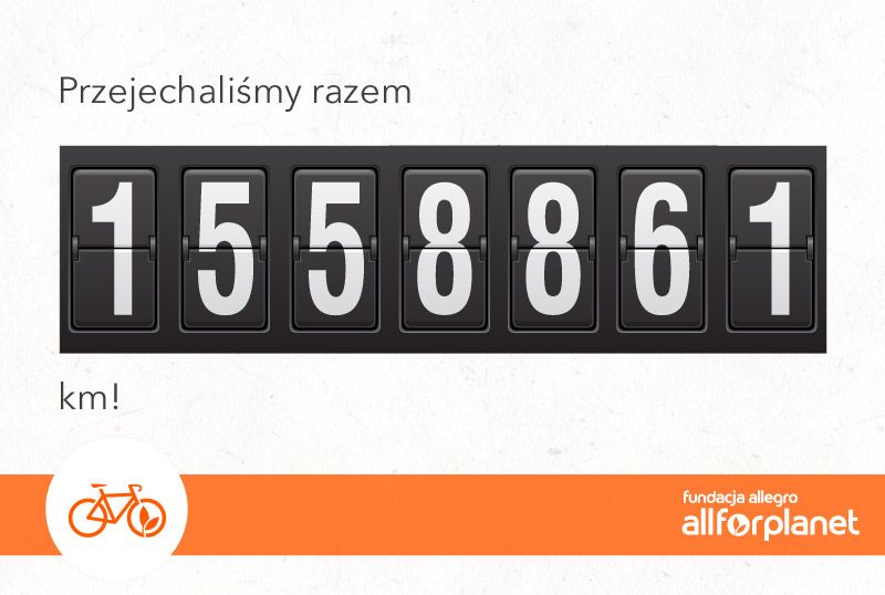 Rekordowym wynikiem zakończyła się 3. edycja akcji „Kręć kilometry” organizowanej przez Fundację Allegro All For Planet. Uczestnicy, walcząc o stojaki rowerowe dla swoich województw, przejechali łącznie ponad półtora miliona kilometrów! Najwięcej- mieszkańcy Wielkopolski. Dalej w rankingu uplasowały się województwa mazowieckie i śląskie. Pula 100 stojaków rowerowych od Fundacji zostanie podzielona pomiędzy 8 regionów.