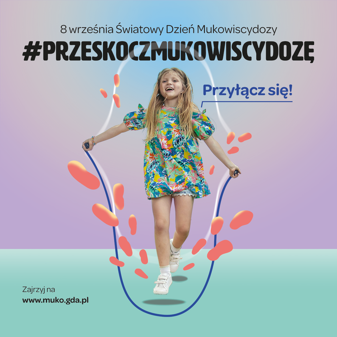 8 września obchodzimy Światowy Dzień Mukowiscydozy. Z tej okazji Polskie Towarzystwo Walki z Mukowiscydozą Oddział w Gdańsku zaprasza do udziału w trzeciej edycji akcji #PrzeskoczMukowiscydozę - cała Polska skacze dla chorych na mukowiscydozę!