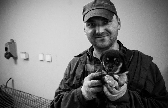 Schronisko dla zwierząt na Paluchu wita odwiedzających napisem: „tu znajdziesz przyjaciela”. Co roku z kilku tysięcy psów, jakie znajdują się pod opieką schroniska, ponad 80% udaje się oddać do adopcji. Zanim jednak zjawi się psi przyjaciel, pracownicy schroniska ciężko pracują, żeby zapewnić jego mieszkańcom jak najlepsze warunki. Pomagają im w tym wolontariusze, którzy – jak pan Darek – przyjeżdżają do schroniska wyprowadzać psy na spacer. Pan Darek pracuje jako handlarz samochodów, ale na Paluchu jest codziennie. - Cały dzień sobie pod psy ustawiam, żeby przynajmniej 2-3 godziny tu spędzić. Żona się denerwuje, że tyle czasu na to poświęcam. No, ale co ja bym w tym czasie robił? Siedział z piwem przed telewizorem? A takie parę godzin spacerów z psami jest lepsze niż jogging! fot. Jan Mencwel